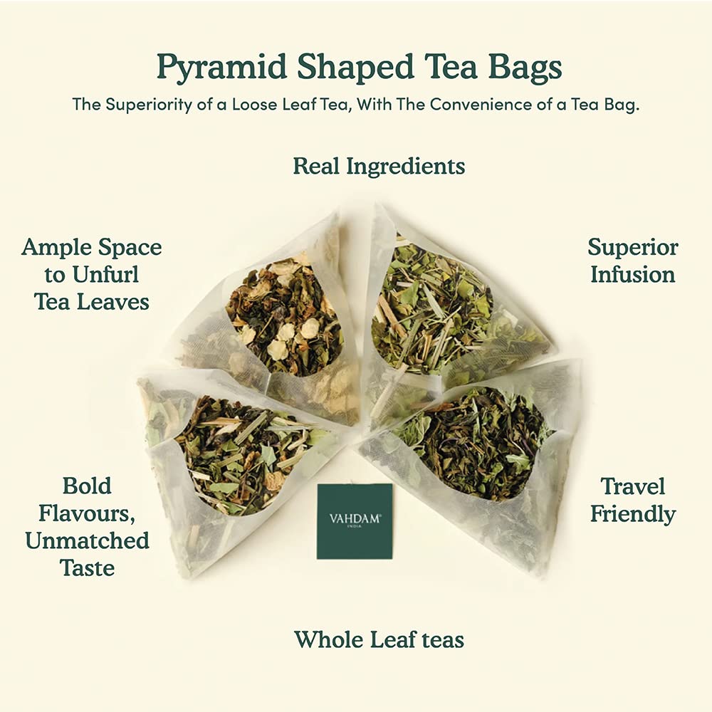 • 100 FULL-LEAF PYRAMID TEA BAGS – Gone Are The Days Of Paper Tea Bags That Tear Up In The Brew. 1 Pouch Of Turmeric Ginger Herbal Tea Contains 100 Sturdy Pyramid-Shaped Tea Bags For A Fresher, Flavorful Brew. Preparation: 1 Tea Bag | 200 Ml Hot Water | 3 – 5 Mins